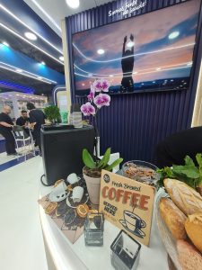 2022 – A Experiência da Cafeteria: Iniciamos a colaboração em 2022 com a montagem de uma pequena cafeteria dentro do estande. Essa abordagem diferenciada transformou o espaço em um ponto de encontro acolhedor, onde os visitantes podiam desfrutar de um café de alta qualidade enquanto conheciam os produtos da Vittorelabs. A cafeteria gerou um grande fluxo e um ambiente propício para negócios.