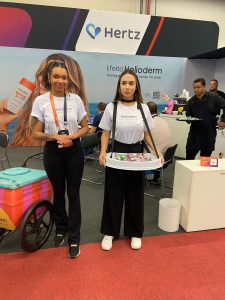 Em 2023, essa colaboração evoluiu para algo ainda mais criativo e personalizado. Para promover o Helioderm, um de seus produtos de destaque, planejamos uma ação especial de distribuição de cocos verdes personalizados, prontos para consumo. Essa iniciativa tropical e refrescante foi um grande sucesso entre os expositores e visitantes, que se surpreenderam com a originalidade e o cuidado da Hertz. A distribuição dos cocos não só proporcionou um momento de alívio e bem-estar na agitada feira, mas também criou uma associação positiva e memorável com a marca Helioderm, demonstrando a capacidade da Casanova Soluções de criar ações que geram engajamento e falam diretamente ao público.