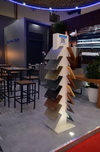 Design Moderno e Acolhedor: O estande incorporou elementos que transmitiam a eficiência e o compromisso da Komeco com a sustentabilidade, utilizando iluminação estratégica e materiais que evocavam qualidade.