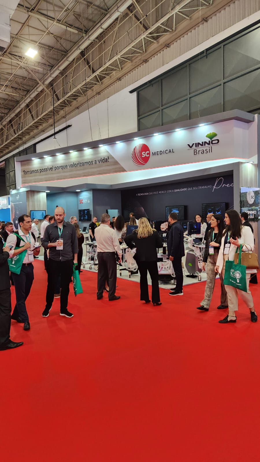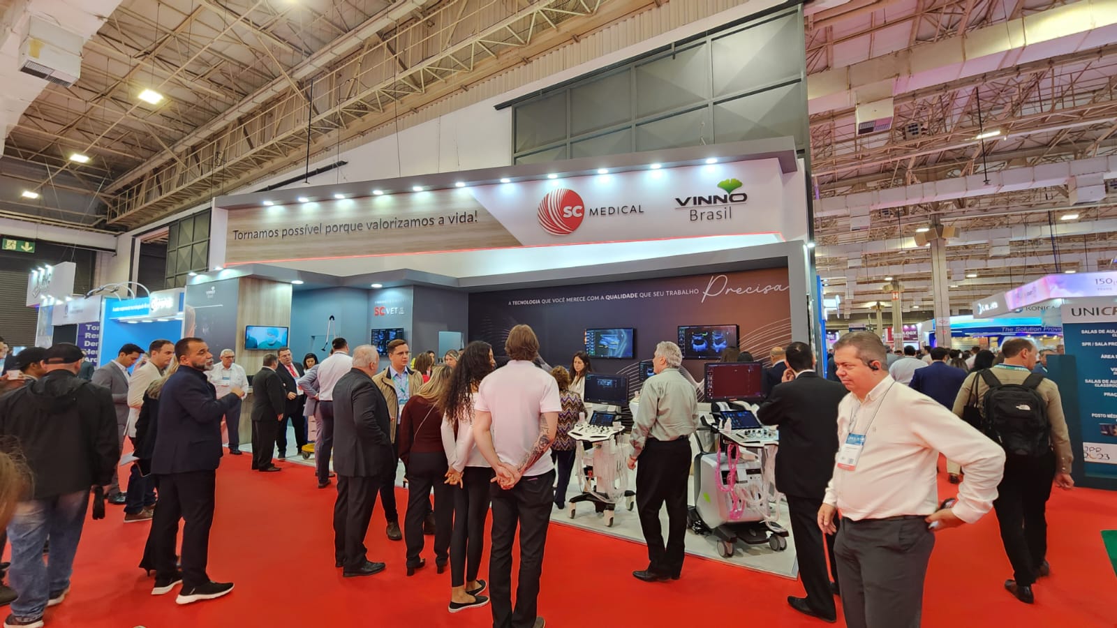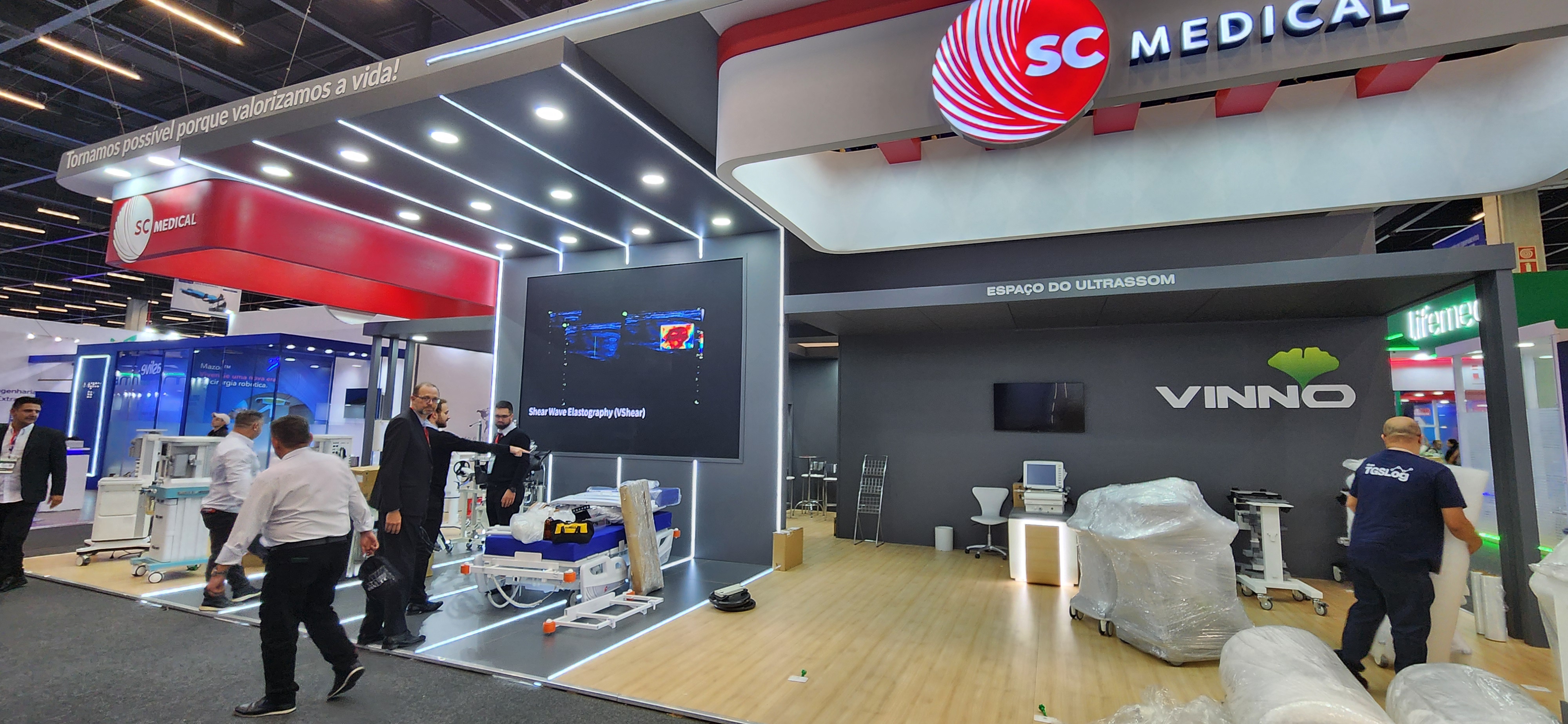 • Criasse ambientes adequados para a demonstração técnica e interativa de produtos sofisticados: Equipamentos como os da Vinno e Edan exigem espaços com infraestrutura específica (energia, iluminação, conectividade) e layout que permitam demonstrações hands-on por especialistas, facilitando a interação e o entendimento por parte de médicos e técnicos.