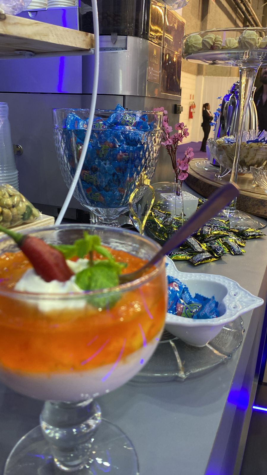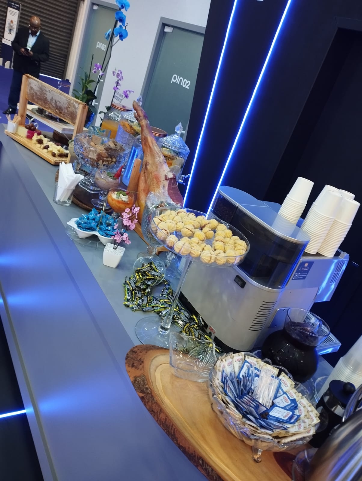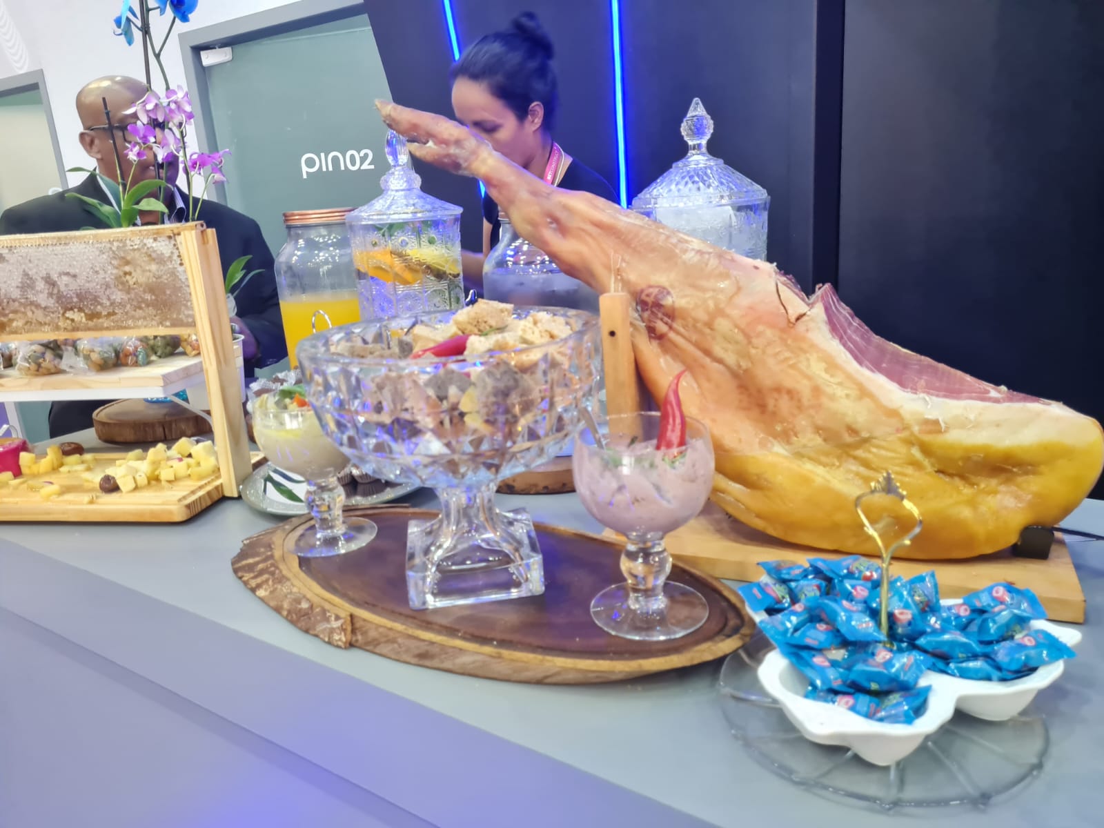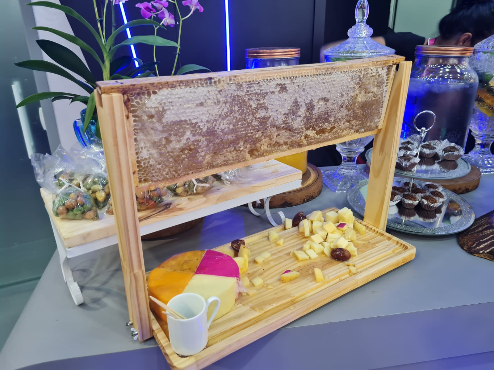 • Buffet Corporativo Personalizado: Oferta de um cardápio sofisticado e memorável, incluindo itens como favo de mel com seleção de queijos finos e jamon serrano cortado na hora, elevando a experiência do visitante e criando pontos de conexão.